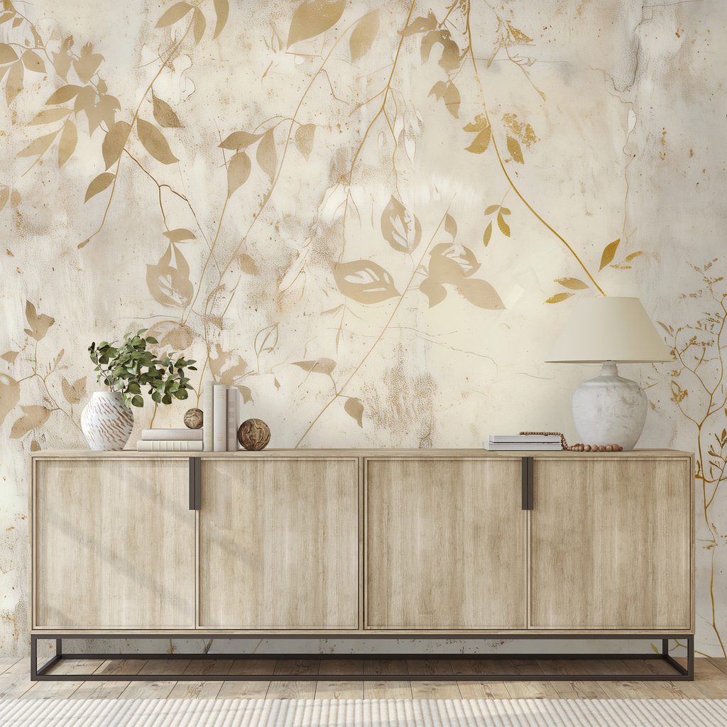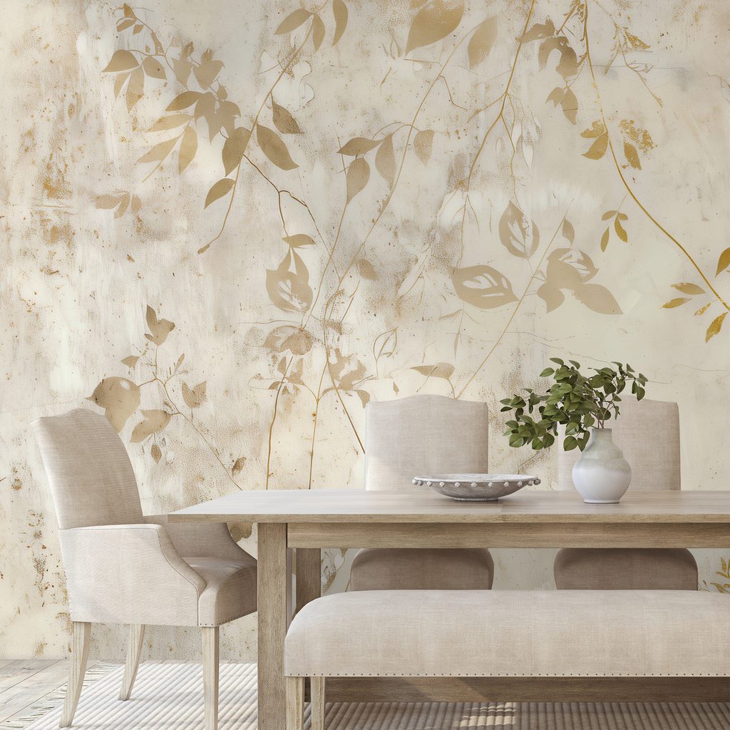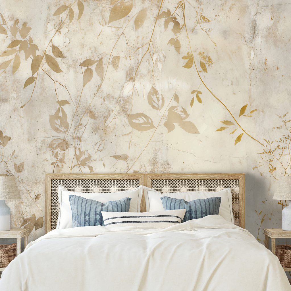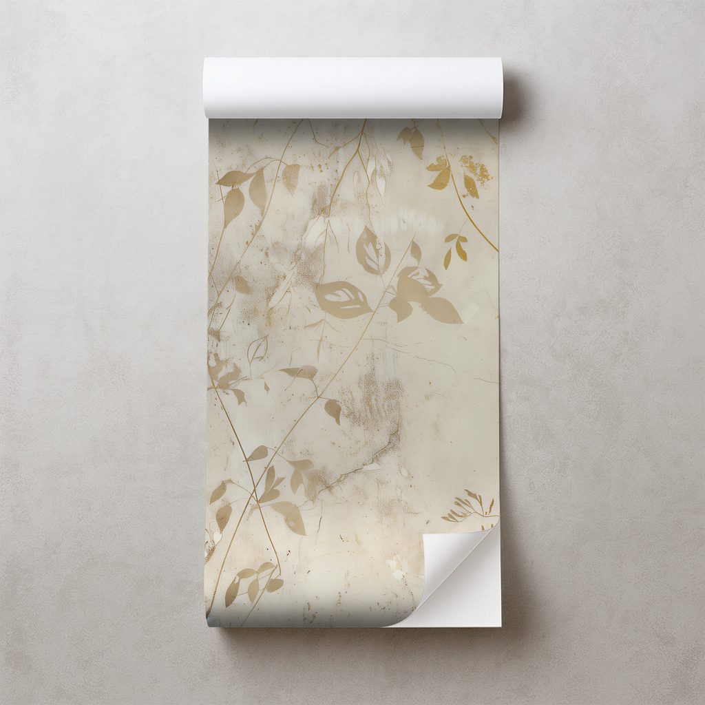 Tapet autoadeziv frunze aurii pe fundal bej