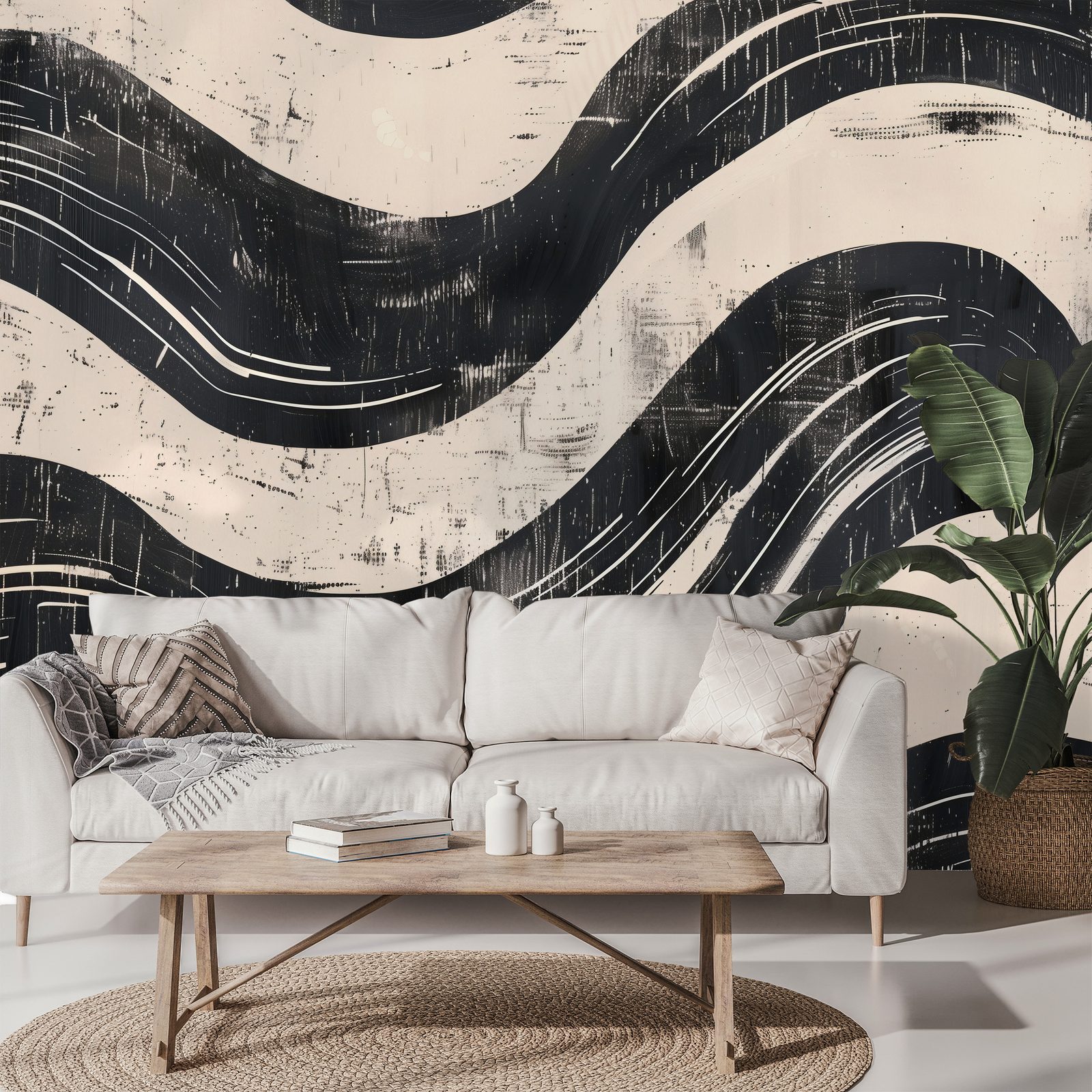 Fototapet valuri abstracte alb-negru