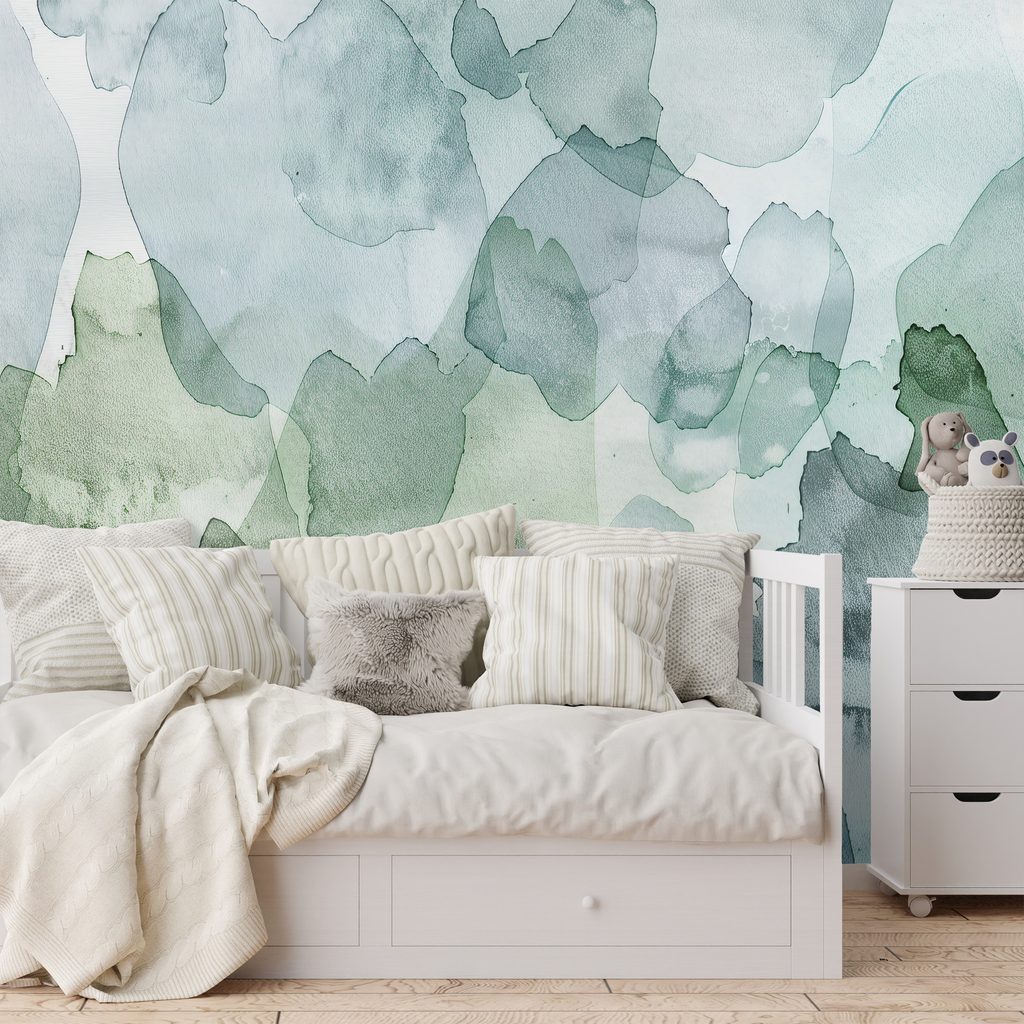 Tapet autoadeziv pete verzi acuarelă