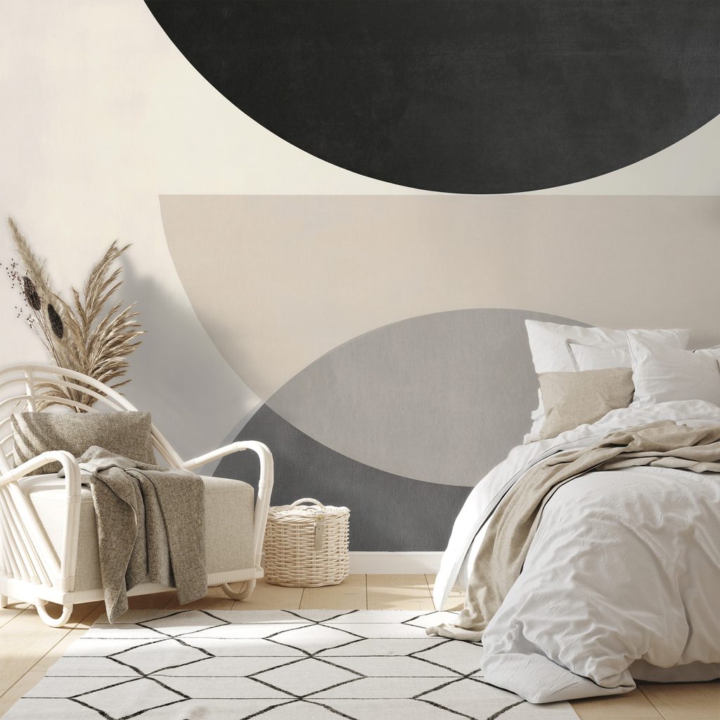 Tapet semicercuri geometrice alb-negru
