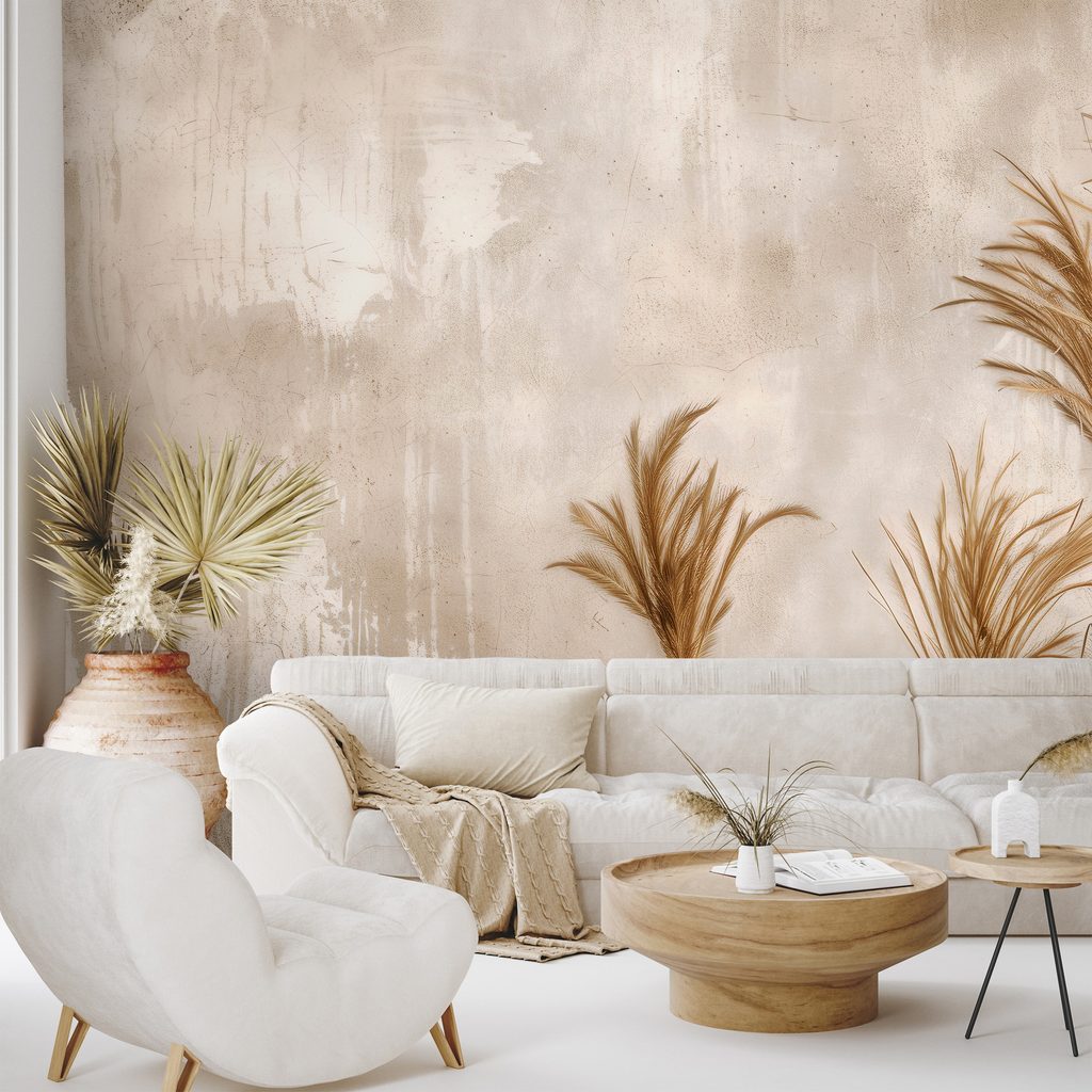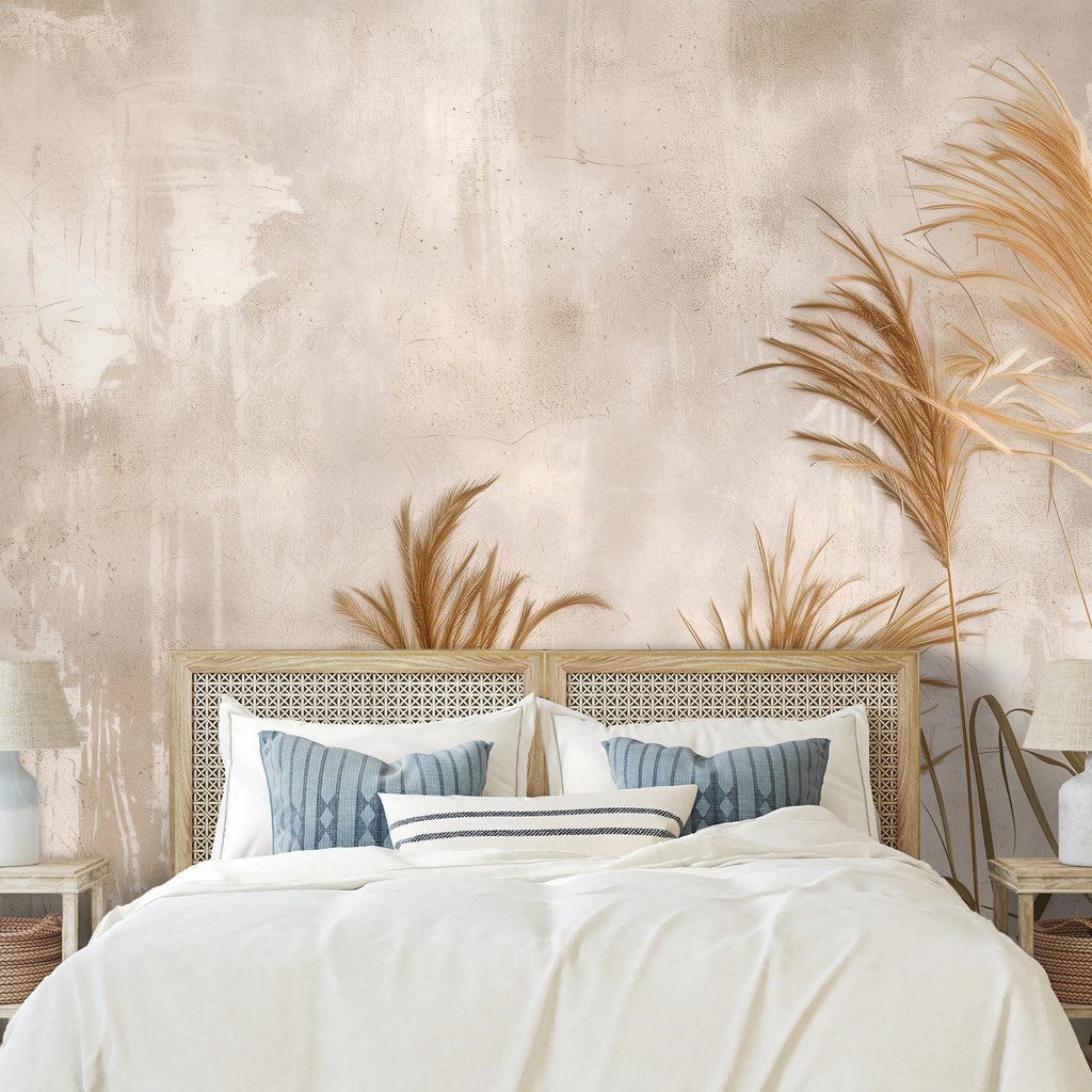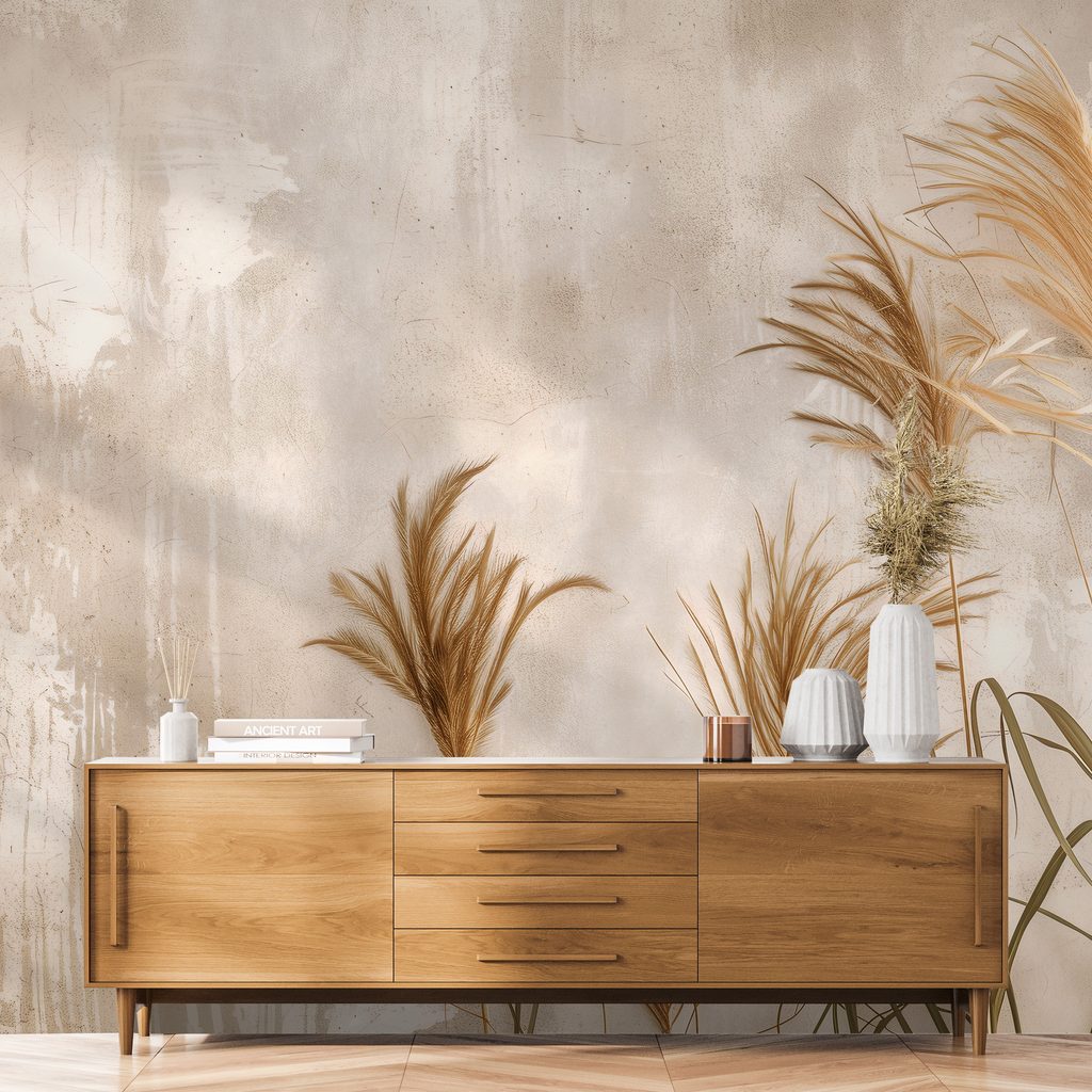 Fototapet iarbă pampas pe fundal bej