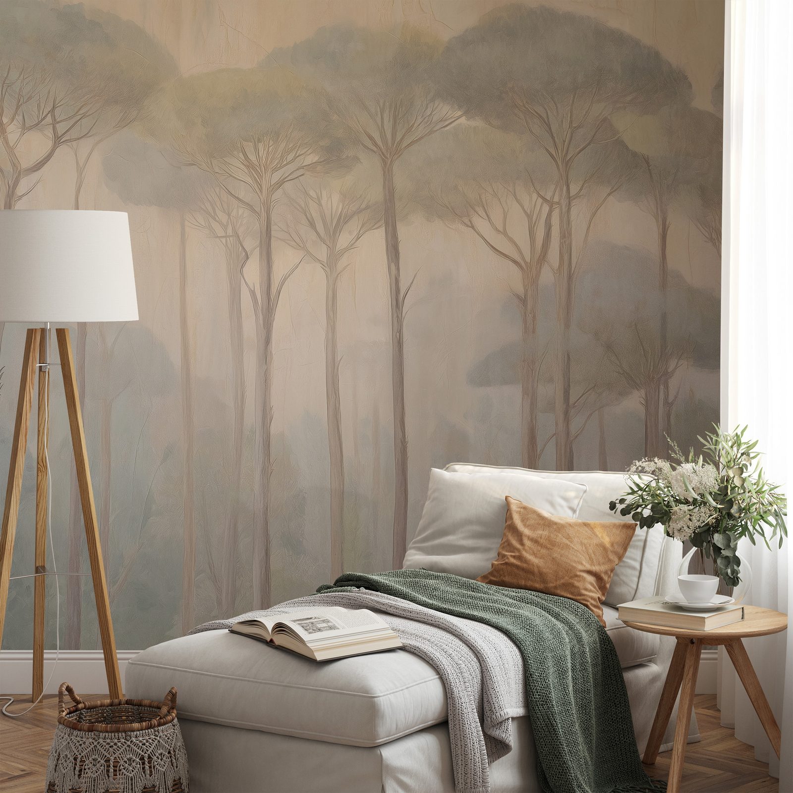Tapet autoadeziv liniștea pădurii în ceață