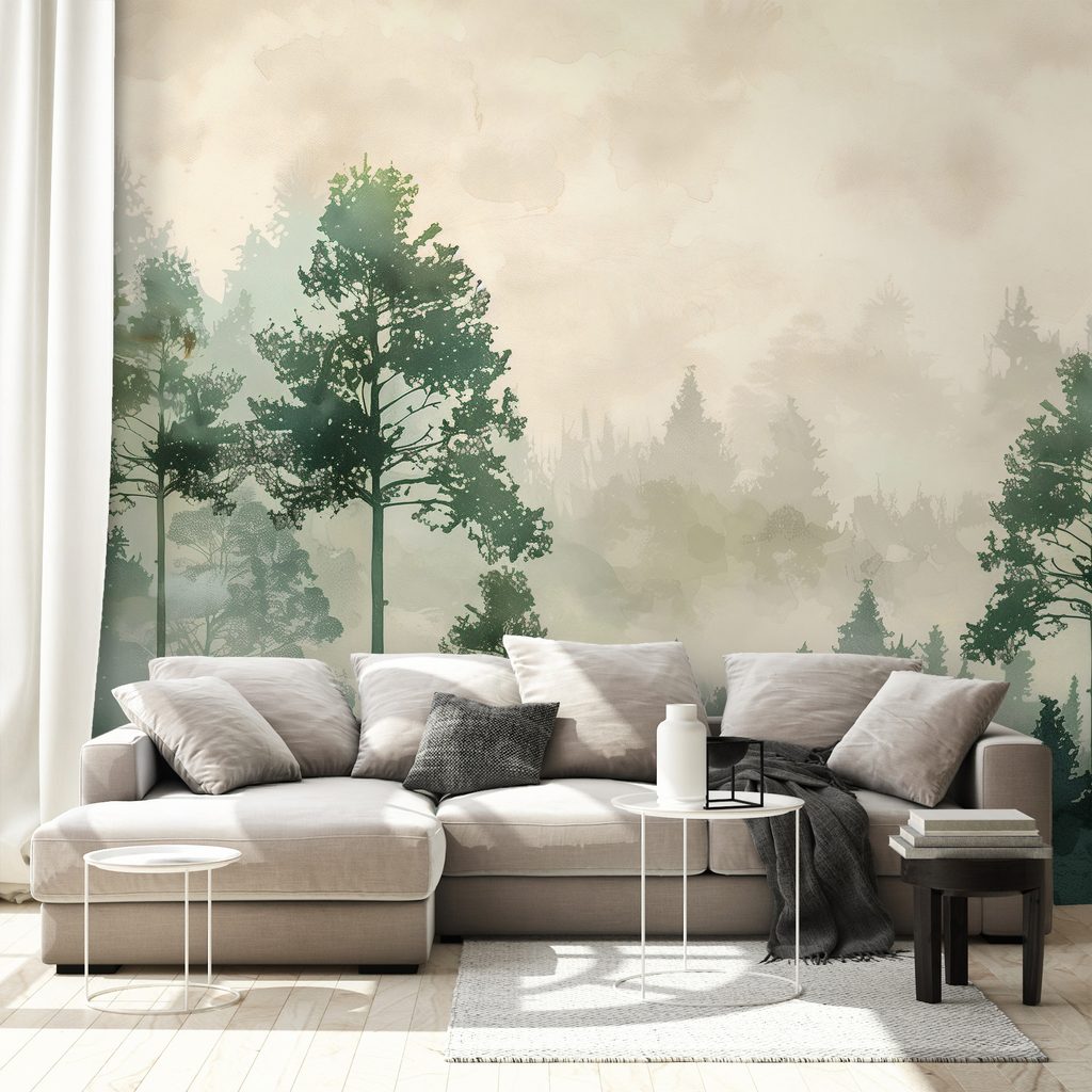 TAPET PEISAJ PASTELAT ÎN CEAȚĂ - TAPET PĂDURE - TAPETURI
