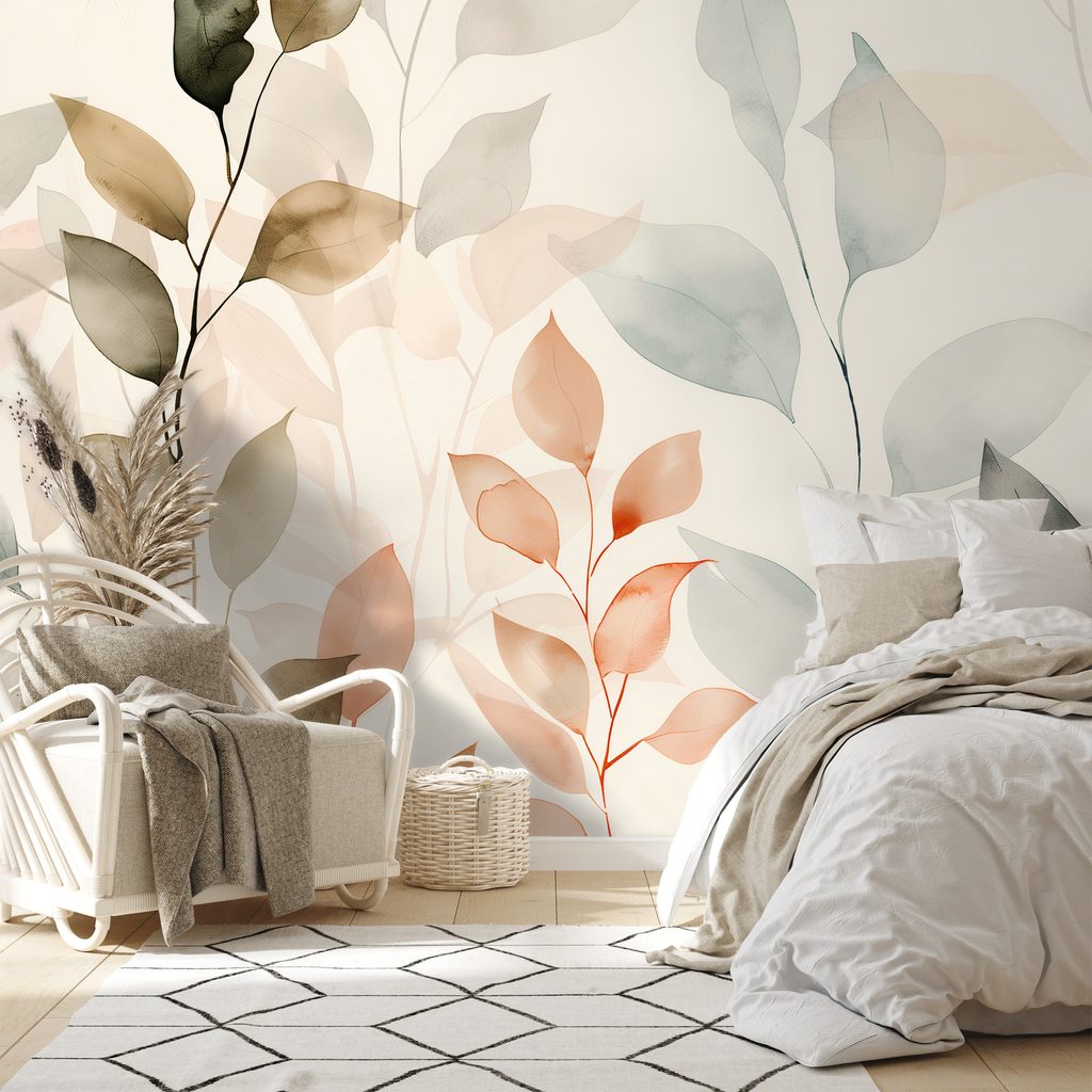 Fototapet autoadeziv frunze acuarelă delicate în tonuri pastel