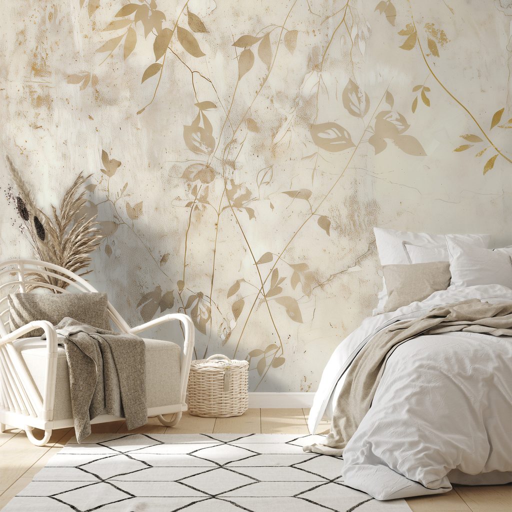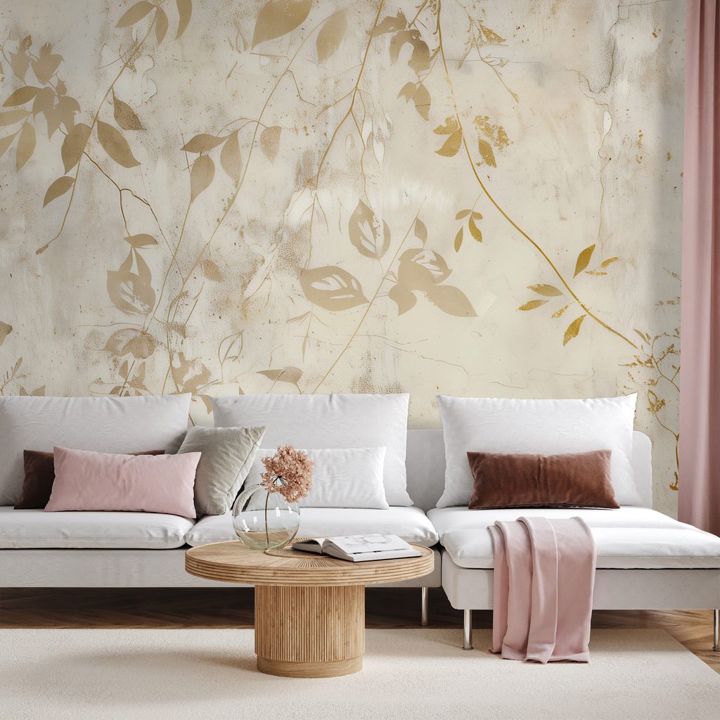 Tapet frunze aurii pe fundal bej